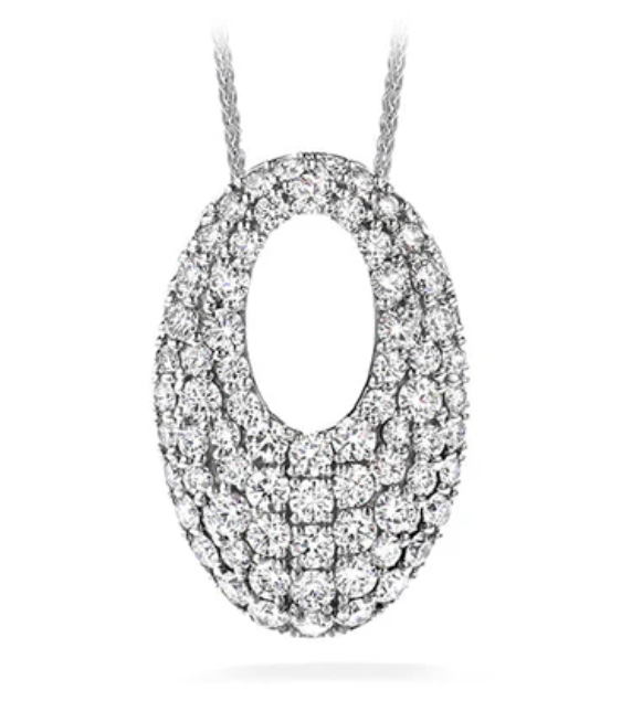 The jaw-dropping beauty = Hearts On Fire 18K White Gold Silk Pave Oval Diamond Necklace featuring 1.24ct in Diamonds on Adjustable Wheat Chain